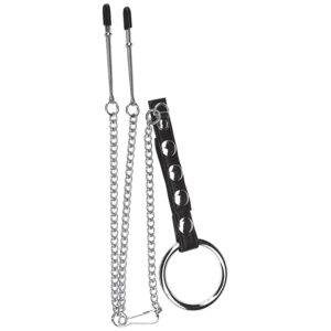 Blue Line C&B Gear Penisring med Brystklemmer – Sølv