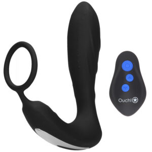 Ouch! Elektro og Vibrerende Butt Plug med Penisring – Sort