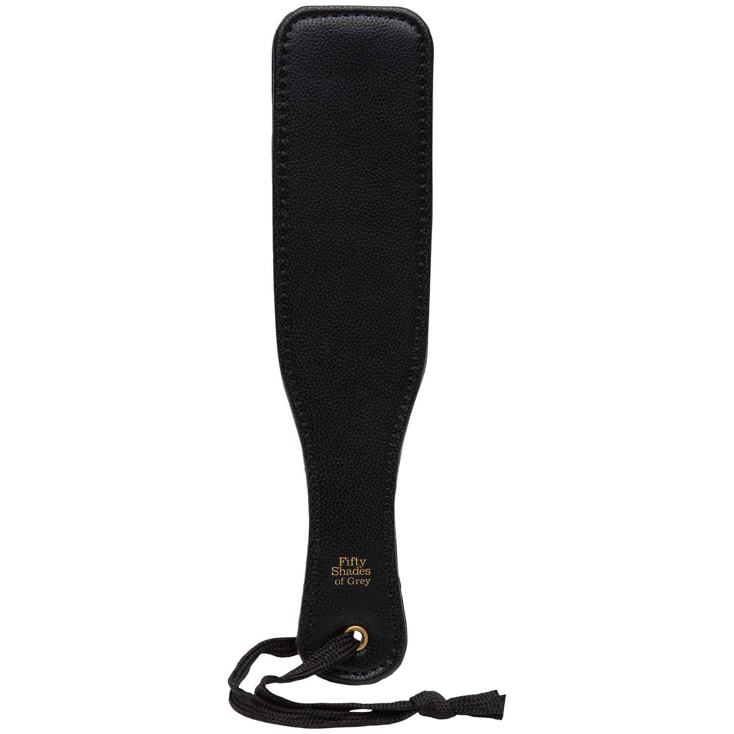 Få flere muligheder at give smæk på med denne Bound to You Paddle. Den ene side har en blød beklædning, imens den anden har en glat overflade, så I har masser af overraskende spanking muligheder i vente. Med en længde på 25 cm og en bredde på 5,5 cm er dette et godt begynder redskab, når Iskal undersøge den mørke side. Med den lille håndfaste paddle er det nemt at ramme hårdt og præcist eller kærtegne med blide strøg. Den er fremstillet i faux læder og designet gør at den ligger godt i hånden. Håndledsstroppen sørger for, at den bliver hvor den skal, også under vilde lege.