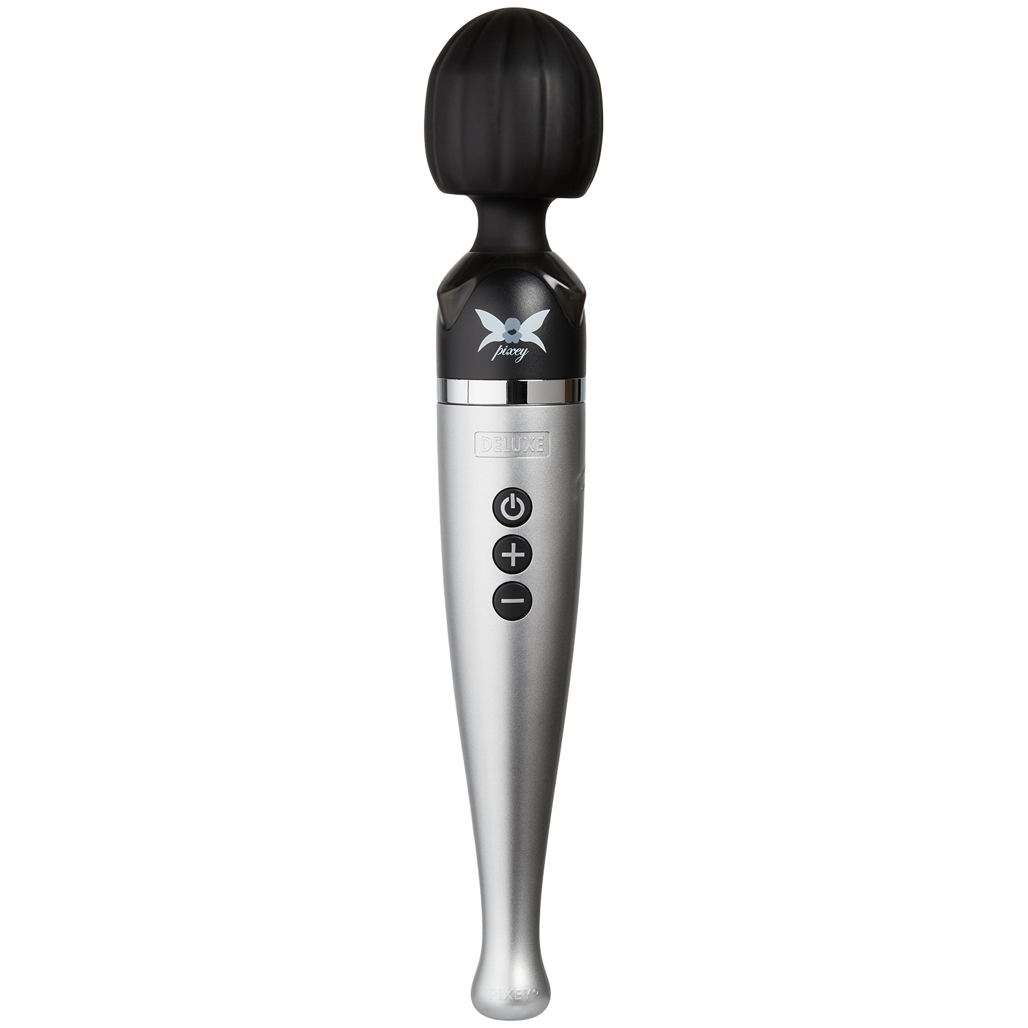 Den imponerende Deluxe wand giver dit klitoris område intens stimulation og rumlende vibrationer, så du kan massere dig til kraftfulde orgasmer. Denne model vibrerer op mod 12000 omdrejninger i minuttet. Det bløde hoved i silikone og de brede riller hjælper med at stimulere og pirre dig, uanset om du bruger din wand på kroppens ømme muskler eller andre erogene zoner. Med den bøjelige hals er det muligt at ændre vinkel, så du rammer det helt rigtige sted. Det slanke skaft gør den let at håndtere. Hold power knappen inde for at tænde din wand og nyde de 5 forskellige vibrationsmønstre og 5 hastiger. Mønstrene skifter du ved at trykke på power knappen, og hastigheden ændres på + og -, så du kan skifte tempo og rytme undervejs, for at få den fulde nydelse. Der er lys ved skaftet, som tændes når du trykker på power knappen. Vil du slukke det, holder du – knappen inde i 3 sekunder. Din wand oplades via det medfølgendeUSB-stik, og du har mulighed for at bruge den, imens den lader. En fuld opladning tager 60 minutter, og giver dig op til 45 minutters sensuel leg. Der medfølger en power adapter, så du også kan lade via stikkontakt.